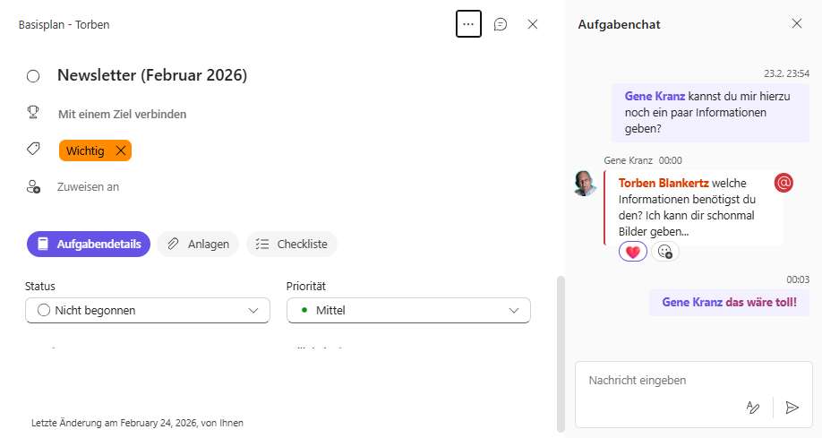 In der mobilen App unter iOS und Android kannst du zwar weiterhin die alten Kommentare sehen und dort auch wie gewohnt im alten Chat weiterschreiben, allerdings werden diese Chats nicht mit der neuen UI synchronisiert. Das heißt: Alles, was du über die Planner‑UI im Web oder in Teams kommentierst, taucht nur dort auf. Und alles, was du in der mobilen App schreibst, bleibt exklusiv in der mobilen App. Zwei getrennte Chatbereiche also – zumindest vorerst.