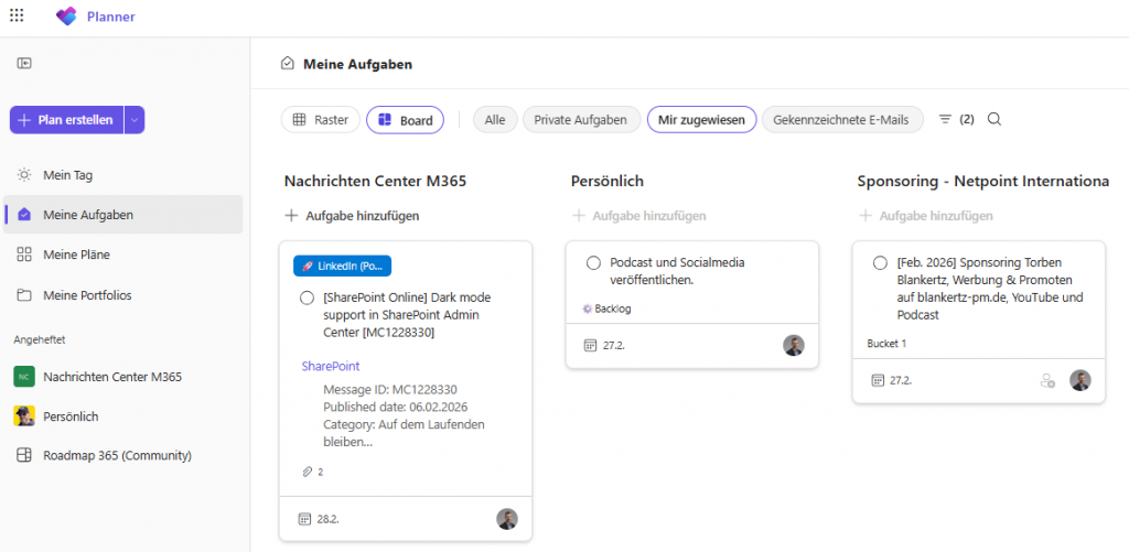 Auch im Februar gab es wieder zwei neue Podcast‑Folgen. Zum Start in den Monat habe ich wie gewohnt einen Blick auf die aktuellen Technews geworfen – inklusive der neuesten Infos aus der Roadmap rund um Microsoft Planner.