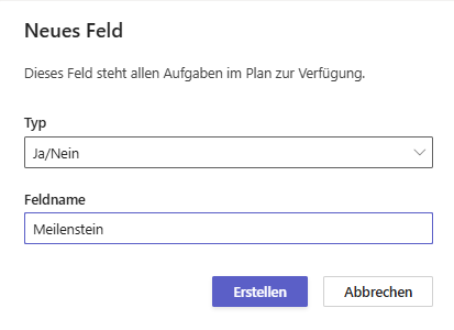 Hinweis: Beachte bitte, dass benutzerdefinierte Felder in Planner keine Enterprise Customer Fields (ECF) sind. Das bedeutet, dass du diese Felder nicht über Power BI abrufen oder auswerten kannst. Auch die Nutzung einer Formelsprache – wie sie im Planner Client möglich ist – wird aktuell noch nicht unterstützt!