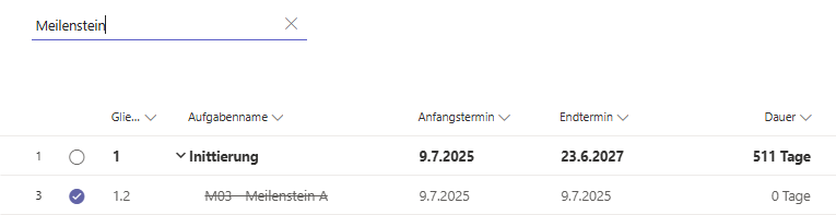 Meilensteine mithilfe der Suchfunktion schnell finden